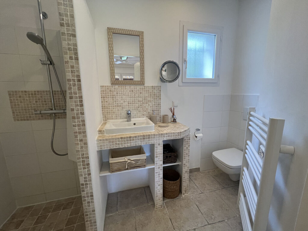 - Équipements : Accès à la cuisine d'été, Climatisation réversible, Douche à l'italienne, Machine à café, Réfrigérateur, Sèche-cheveux, Sèche-serviettes, Télévision, WC, Wi-Fi
